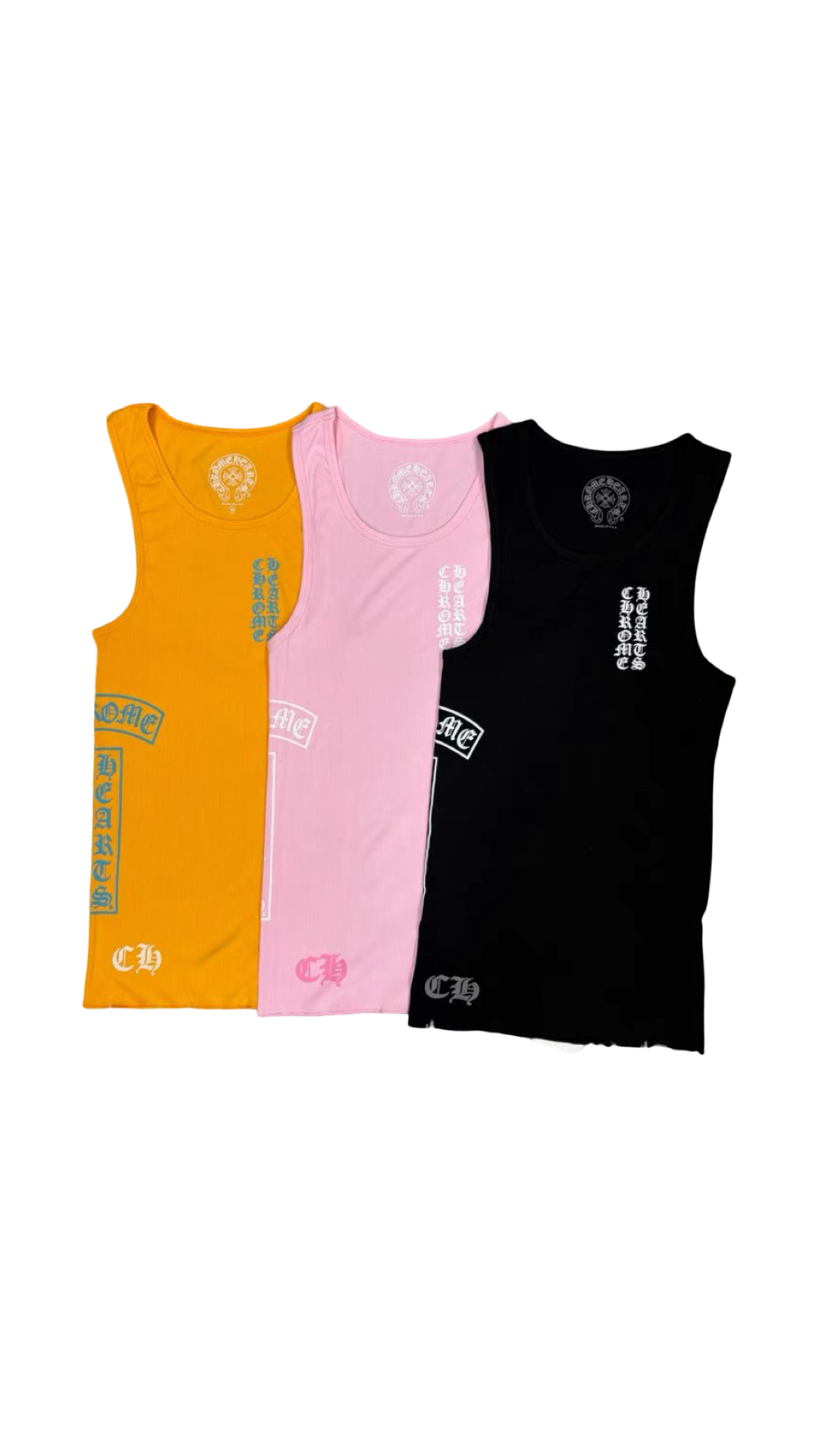 The Multi Chrome Heart Vest is a chic and trendy top, available in bold orange, pink, and versatile black. Designed for the fashion-forward, it features eye-catching chrome hearts and is perfect for layering or wearing on its own. Add a touch of drippiness to your wardrobe and stand out from the crowd.